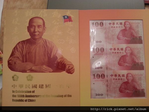 百年的是國父 孫中山先生 三張百元鈔 也是連號